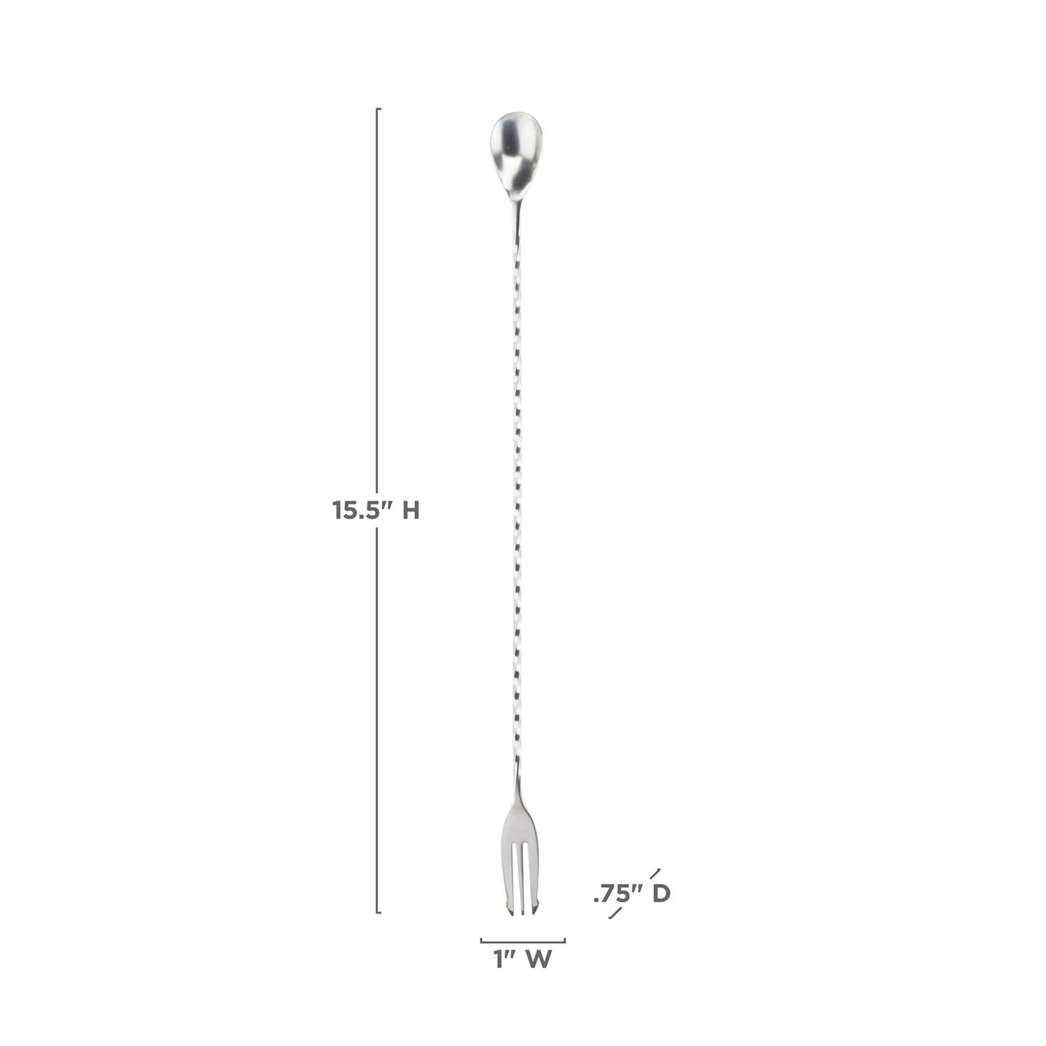 Designed for the quickest swizzling and stirring, our trident bar spoon spins its way from a smoothly concave spoon bowl to a forked tip at the stem’s far end. An aesthetic nod to the nautical, the trident also works for spearing the perfect garnish to cap your drink.