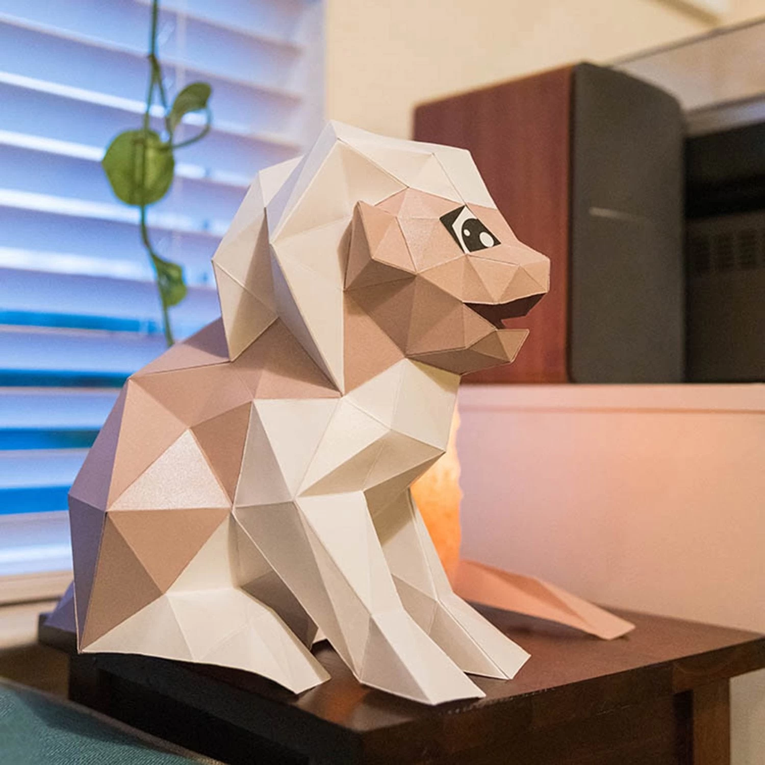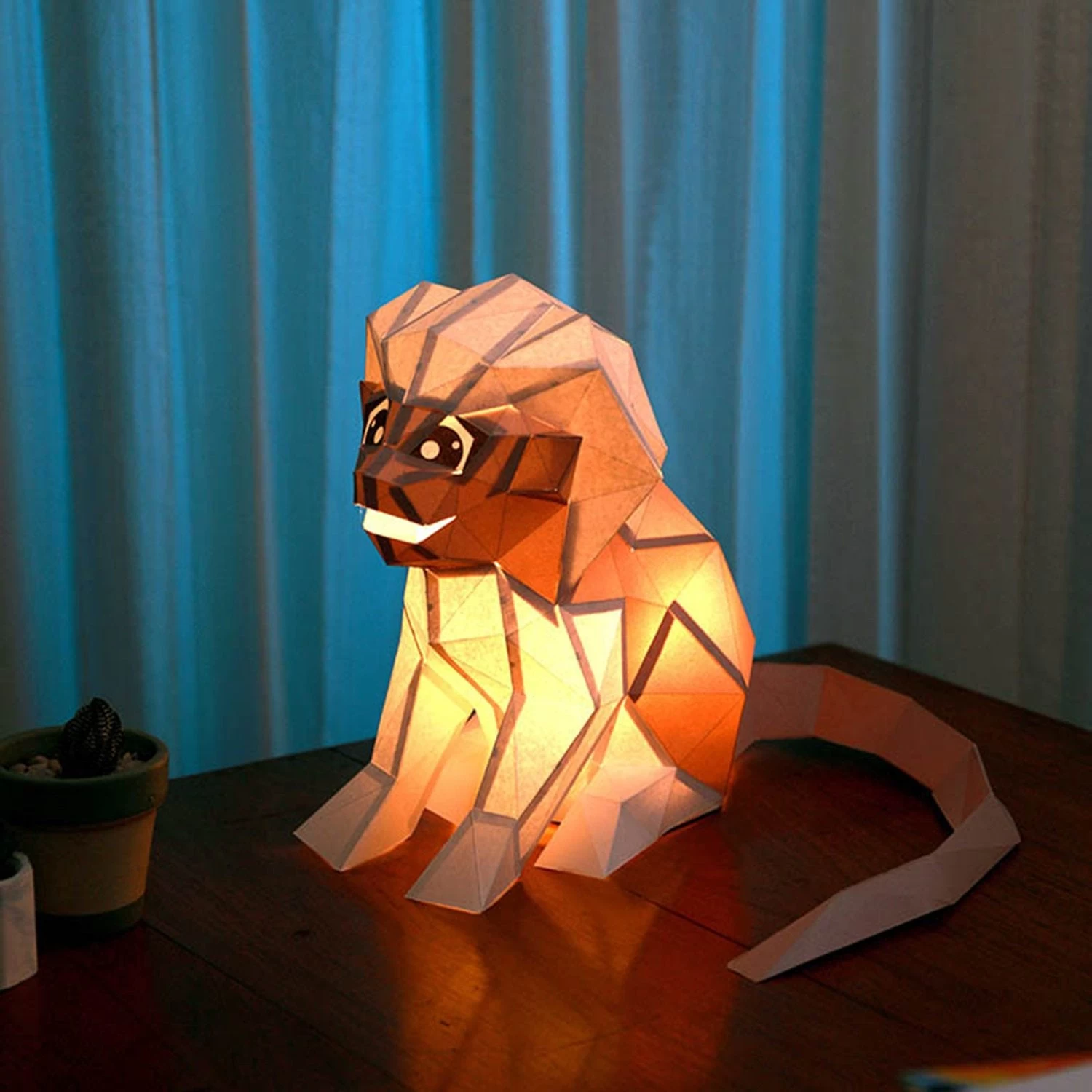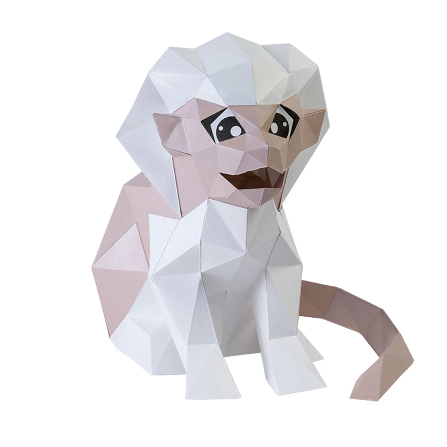 Stop monkeying around and submit to the jungle madness. Decorate your shelf, desk or counter top with this 3D stand-alone tamarin statue made from kirigami paper.