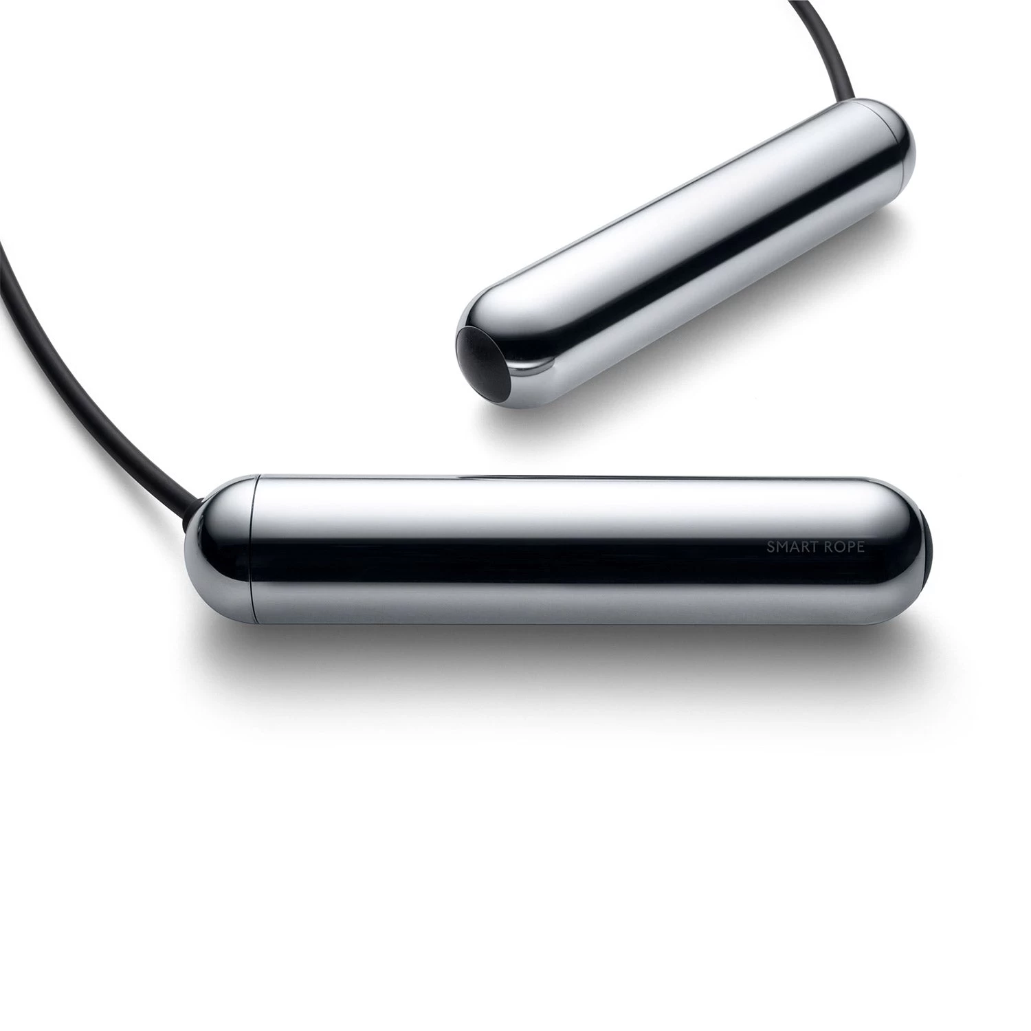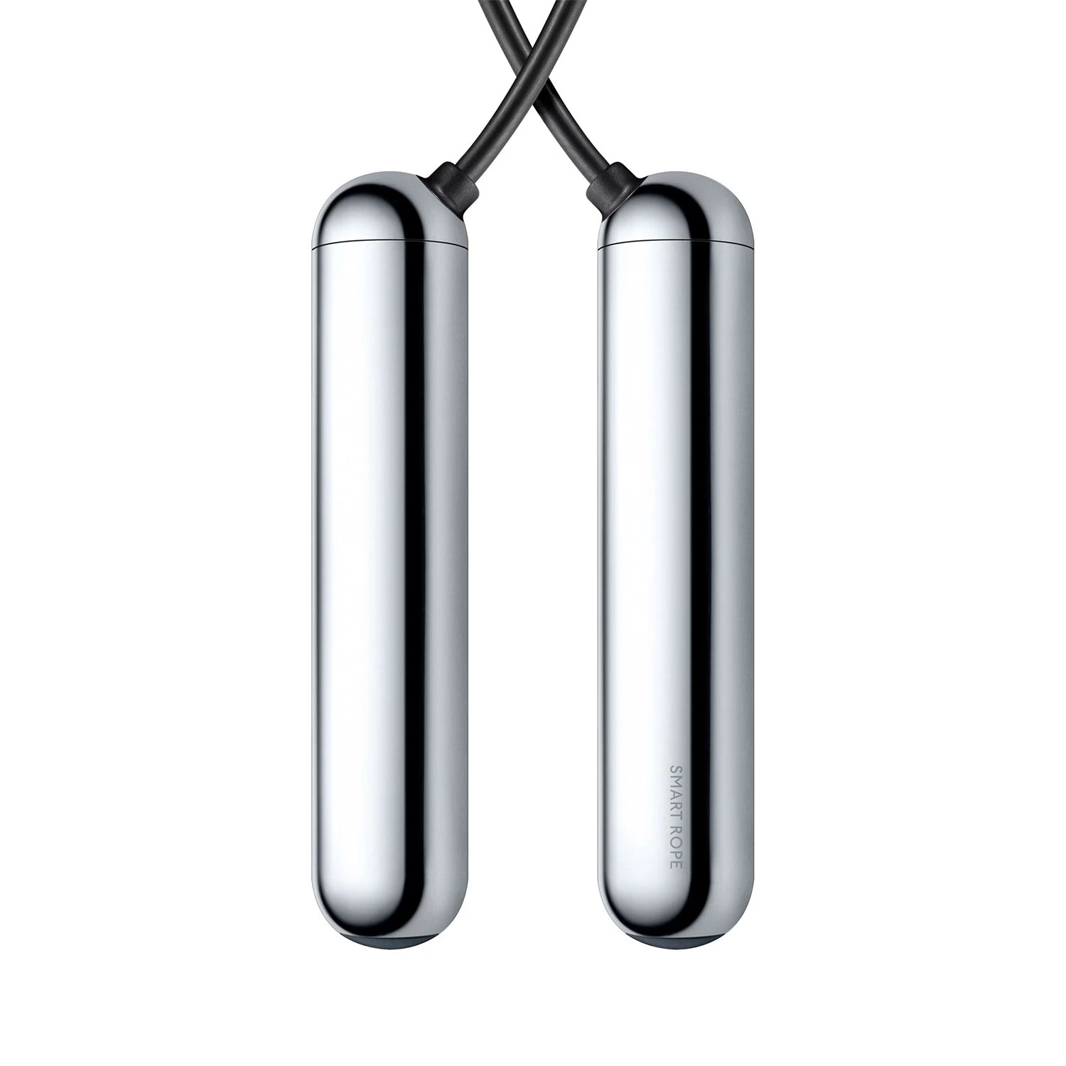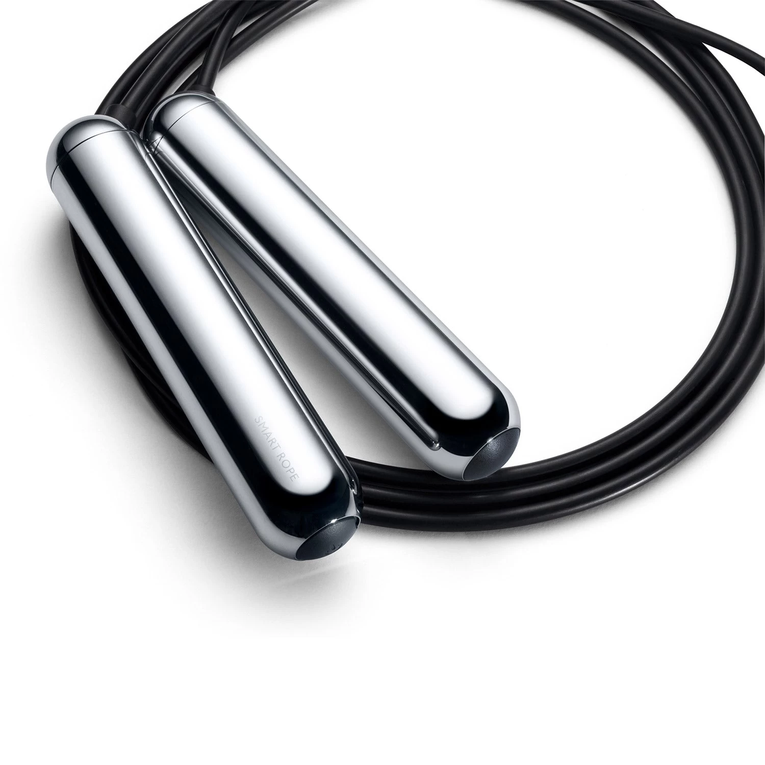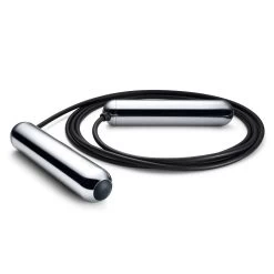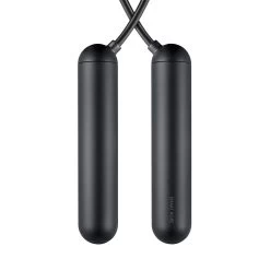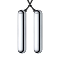 LED-embedded jump rope available in Black and Chrome. Logo etched at handles. Includes Micro-USB charging cable and nylon carrying case.