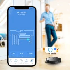 This gyroscope navigating robot not only vacuums, sweeps and mops but it acts as a communication monitor between the robot and your mobile device. It allows you to see, hear, talk, record and capture pictures while cleaning dirt, dust, pet hairs and allergens. With Wi-Fi and the smart app feature you can construct a true home mapping route with 5 different cleaning modes. Whether you’re away from home or not, you can visualize room-to-room cleaning or just as a safe-guard monitoring system. Other functions include scheduled cleanings, self-charging, virtual boundaries, anti-falling and obstacle detection. Equipped with an electric mopping tank with adjustable water dripping speeds, 3-levels of suction power and memory retention to its last destination. Great for carpets, hardwood floors, tiles or masonry. Enjoy the comfort of knowing that your home is safe while being cleaned efficiently.