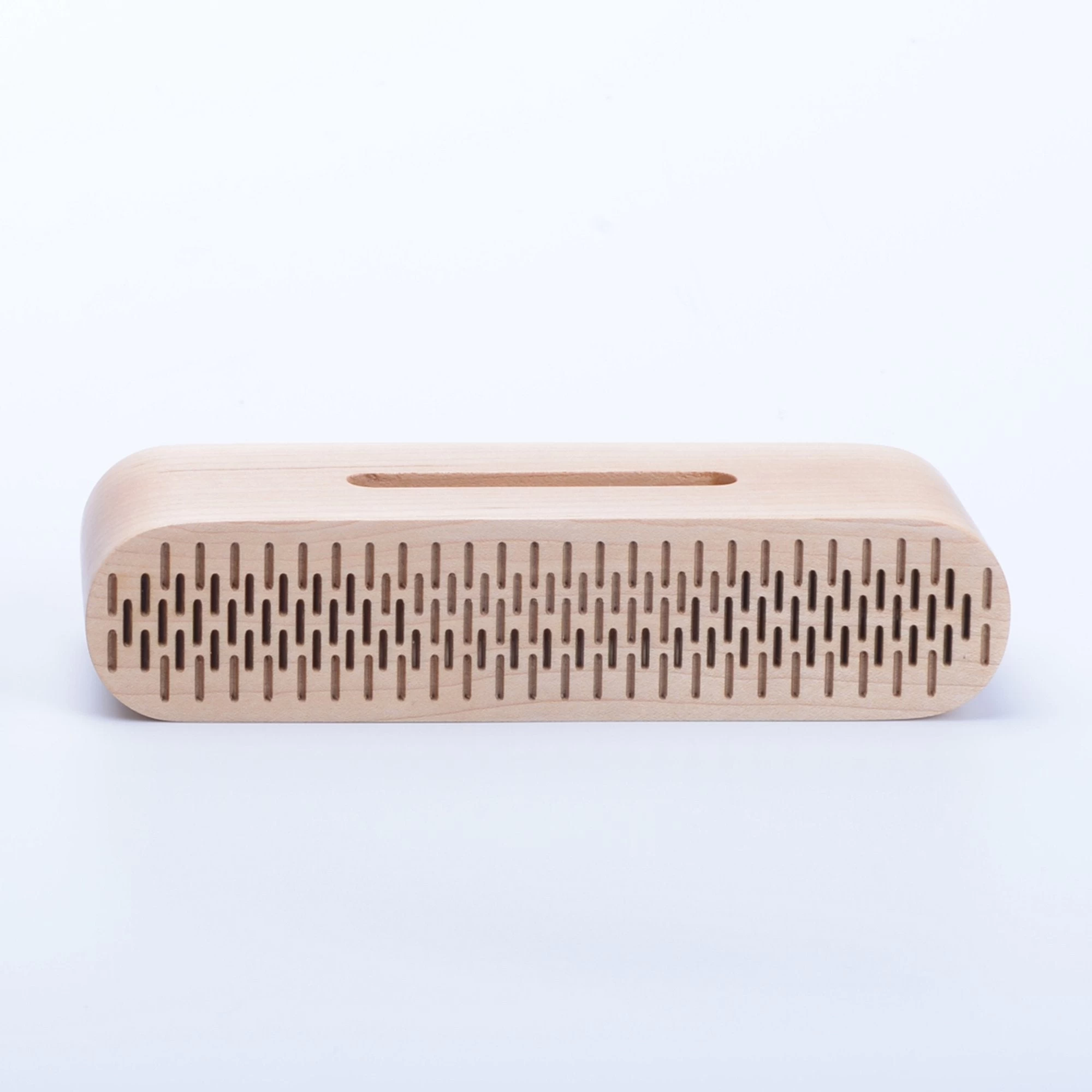 A beautiful and extremely useful piece of kit, our solid wood amplifier speaker will not only amplify your favorite music and improve the sound quality, but it’s also acts as a convenient stand for your smartphone. Crafted from either German beech or black US walnut, our amplifier speakers adds a touch of natural sophistication to any home. Amplifying music from your smartphone by up to 3 times without requiring any power source at all, this cell phone amplifier is a truly ingenious solution for those who dislike cables and clutter – the embodiment of minimalism.