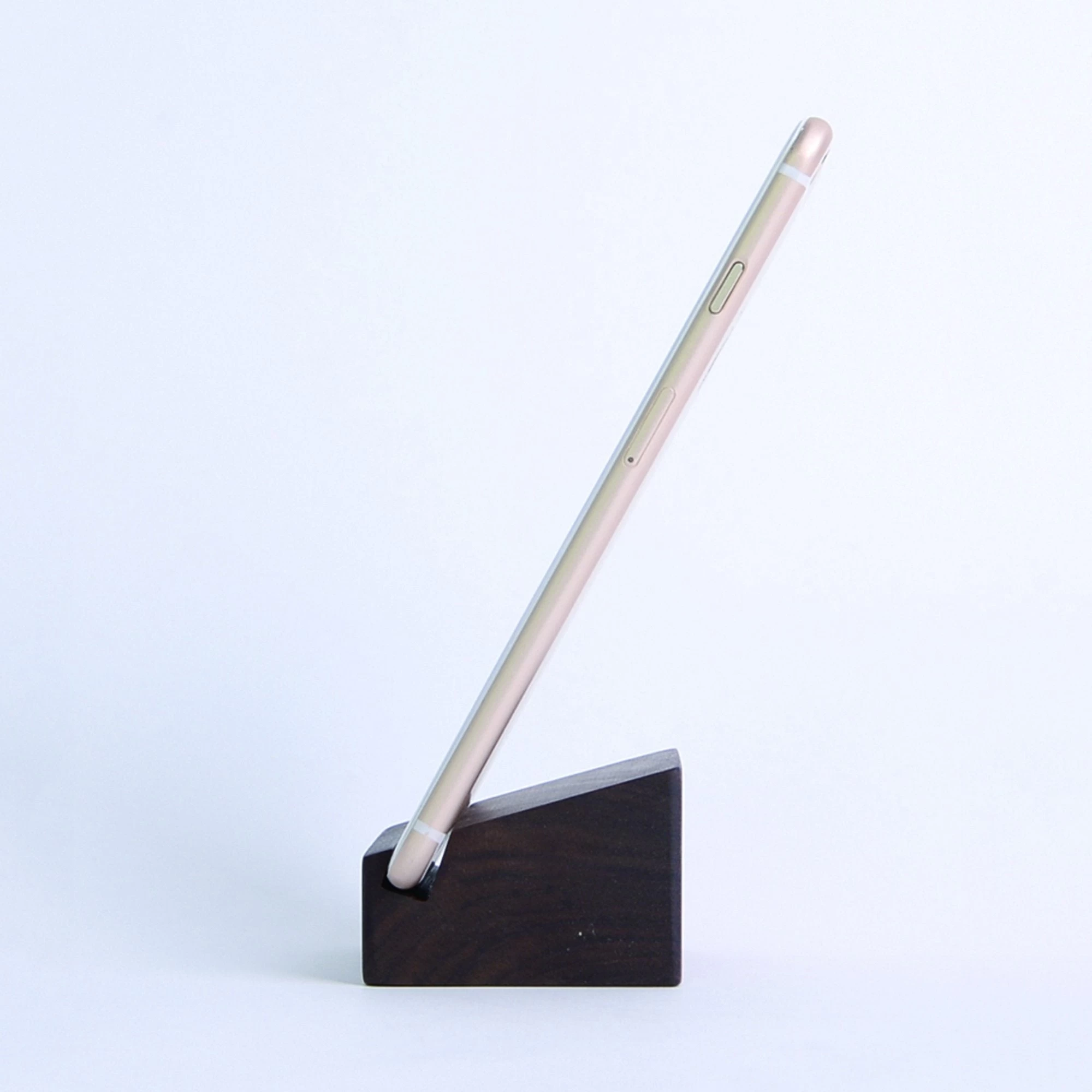As much a piece of minimalist art as it is a place to park your smartphone or iPad, our beautiful smartphone holder stand makes the perfect wedding, anniversary or birthday gift. Handcrafted from US black walnut, our wood phone holder feels natural and organic, designed with love and attention, yet perfectly functional. A secure and convenient resting place for your smartphone or iPad, our cellphone holder blends into every home and office environment.