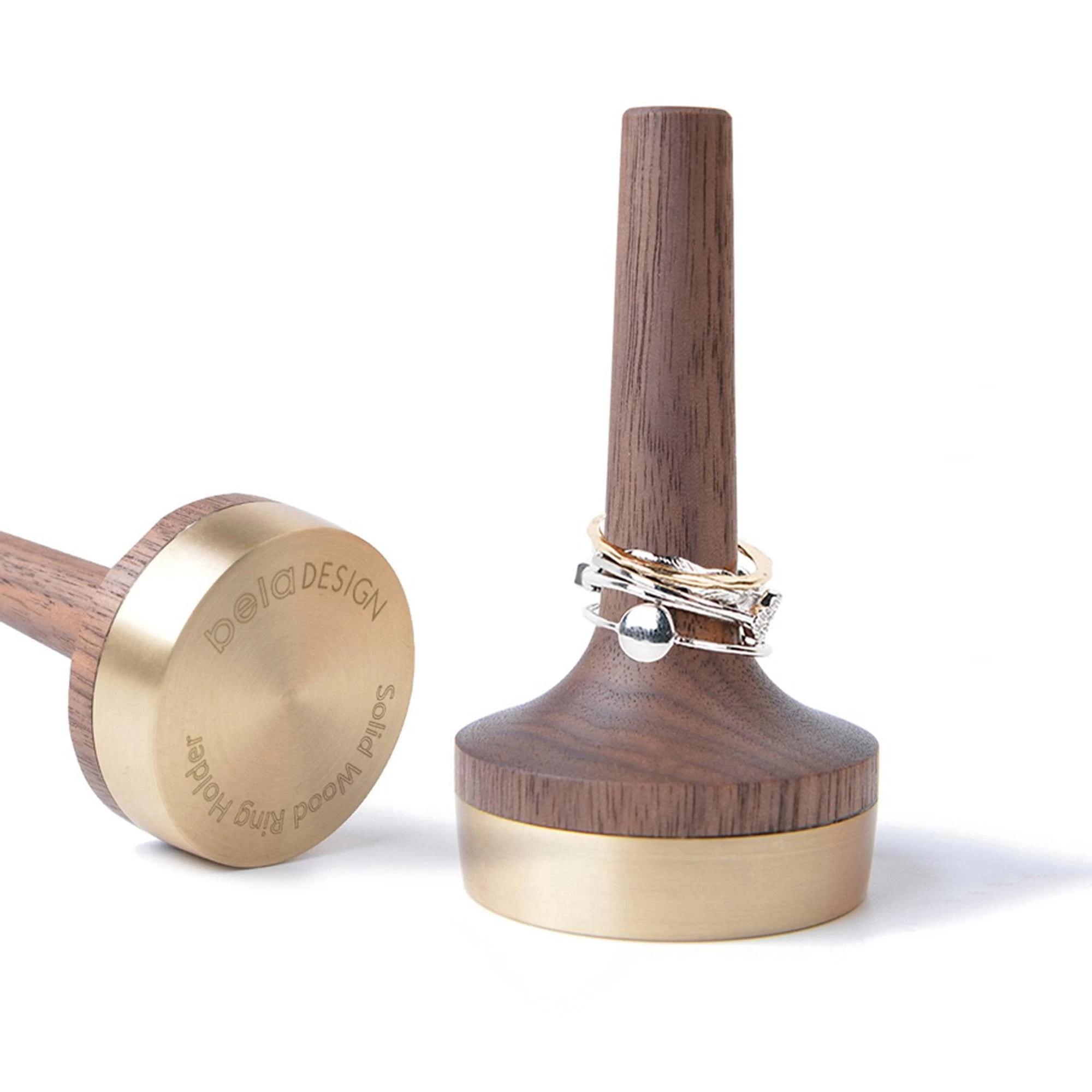 A clever and classy piece of minimalist design, our wooden ring holder makes a perfect gift for a special occasion, whether it’s a wedding, anniversary, or birthday. Made of black walnut wood from the United States, and finished with a solid brass base, this lovely item provides the ideal place to store your precious rings and other jewelry. Artful, and crafted will real care and attention to detail, our wooden jewelry holder will be much loved, and will last you a lifetime.