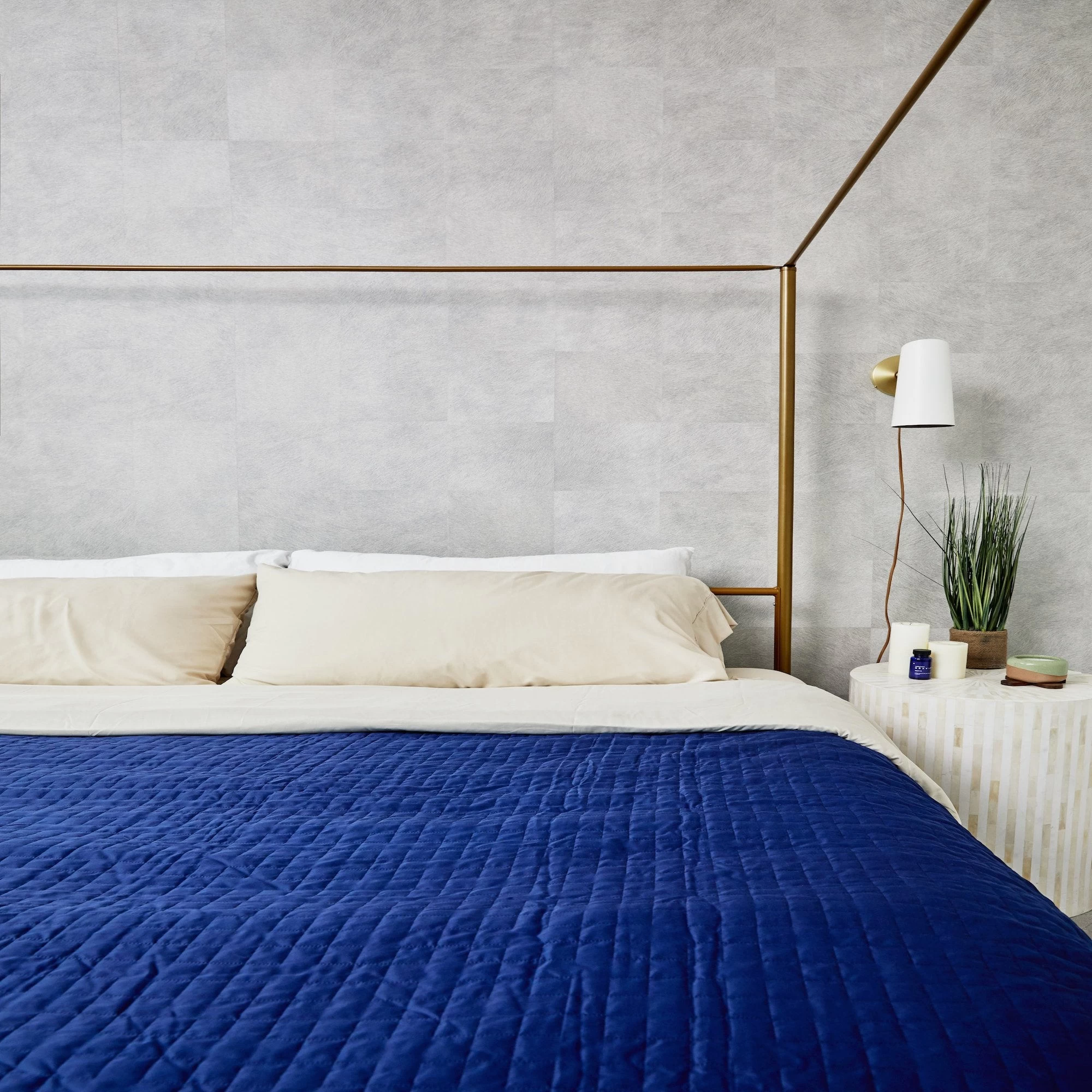 Precise gridded stitching ensures the glass beads remain uniformly distributed, making Gravity the best weighted blanket and cooling comforter on the market.