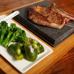 Simply heat the stone (on the hob or stove, under the grill, in the oven or even on your barbecue), add a selection of sauces or other condiments and your favourite sides and present your chosen cut of meat, fish or vegetables on the sizzling stone for you and your guests to enjoy cooking every bite exactly as you like.