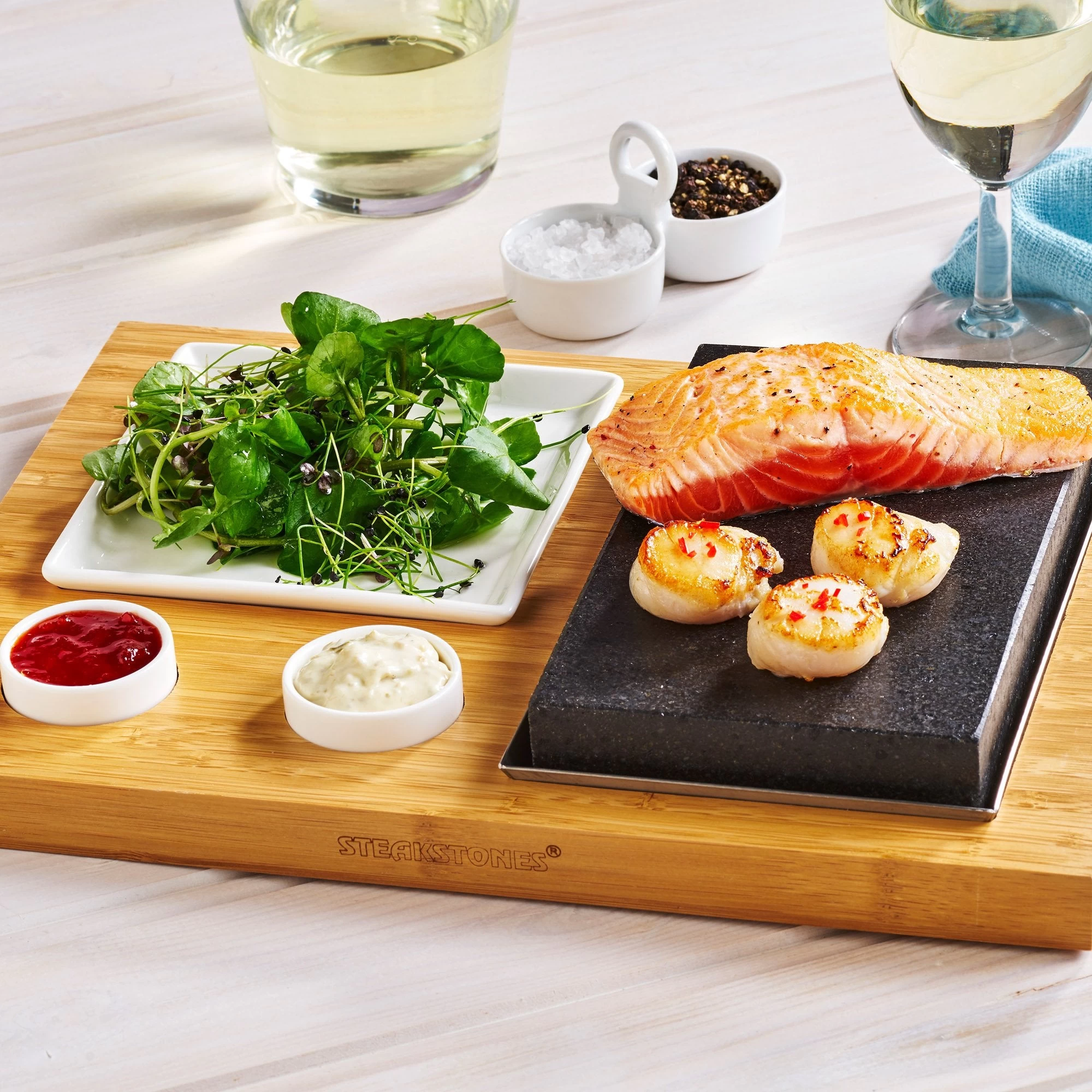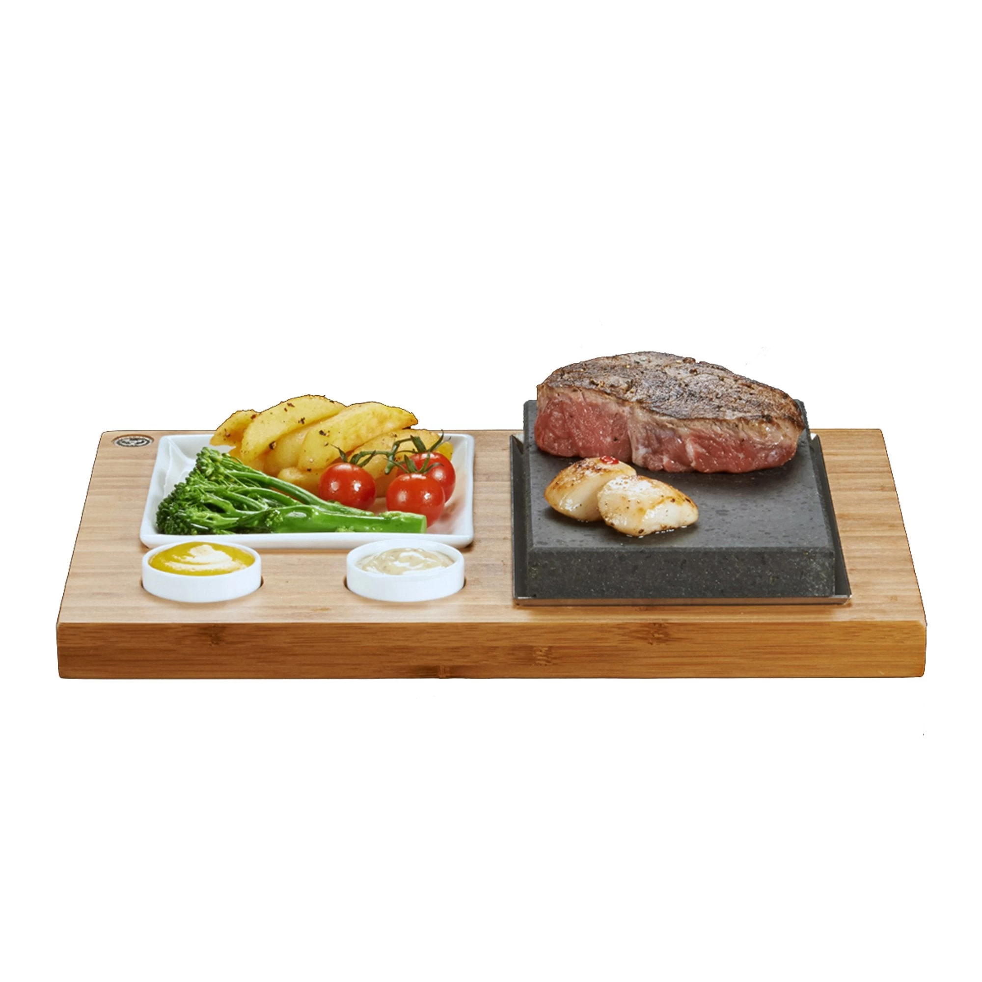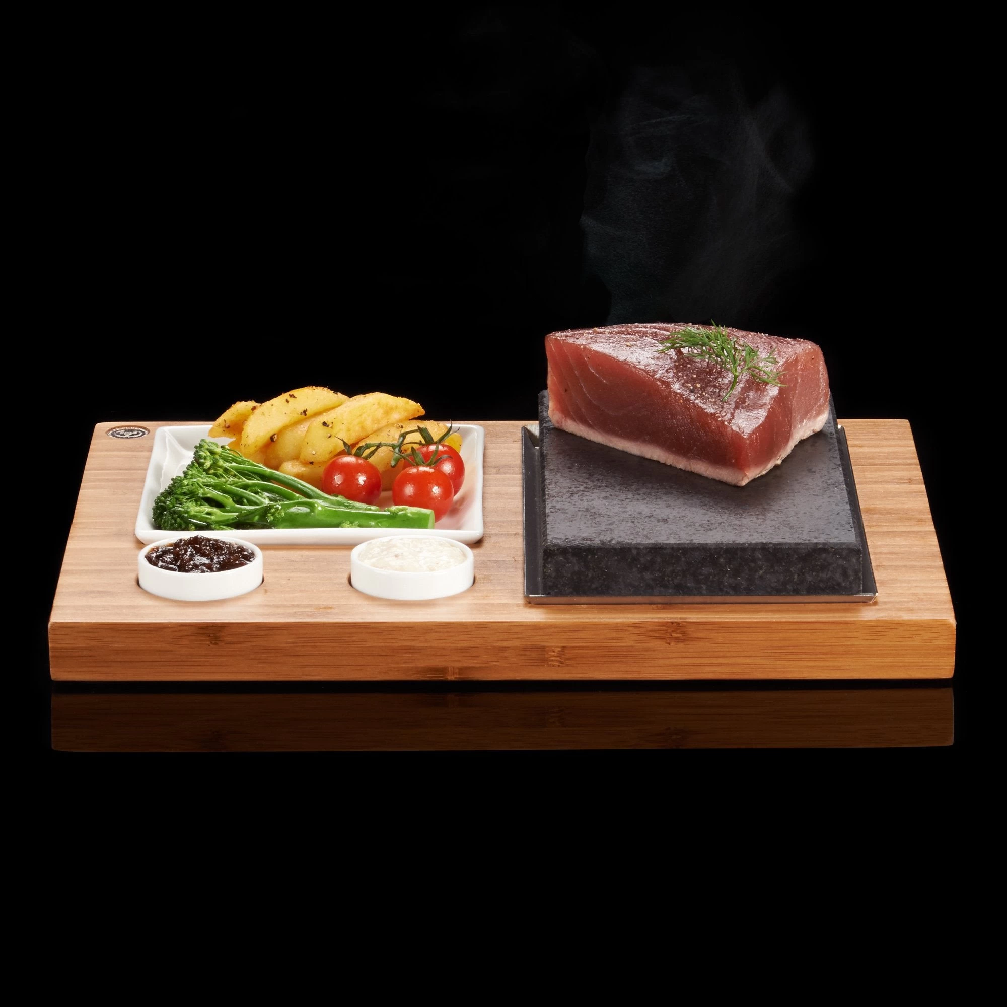 Simply heat the stone (on the hob or stove, under the grill, in the oven or even on your barbecue), add a selection of sauces or other condiments and your favourite sides and present your chosen cut of meat, fish or vegetables on the sizzling stone for you and your guests to enjoy cooking every bite exactly as you like.