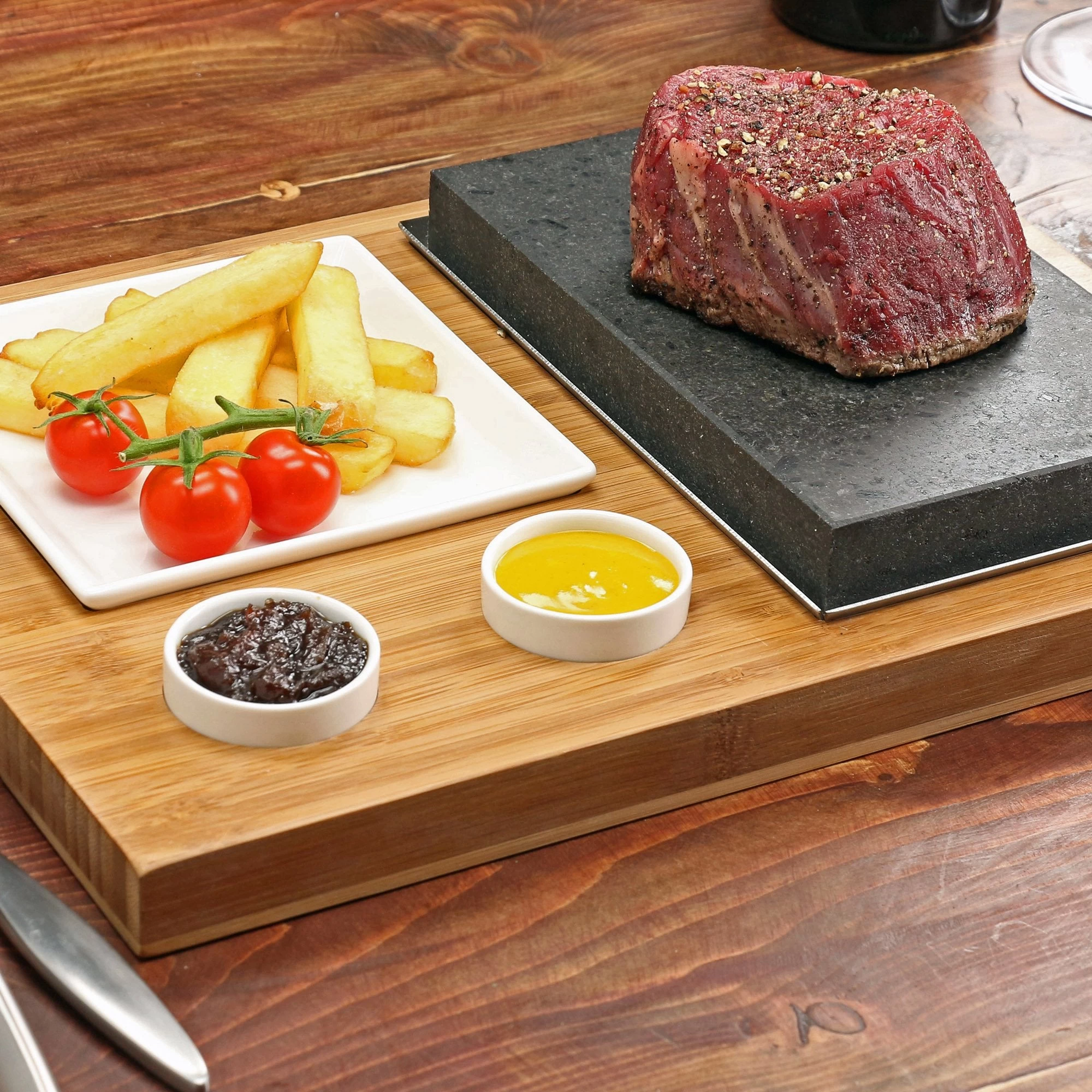 This is the quickest way to the most impressive dinner party you will host. This great little set provides the perfect way to enjoy your favourite cut of steak sizzling away, accompanied by a seasonal selection of vegetables or salad and your two favourite sauces or other, chosen condiments. SteakStones are guaranteed to make your dinner parties the talk of the town and once your guests have experienced the SteakStones sizzle the only problem will be wondering why they did it differently before.