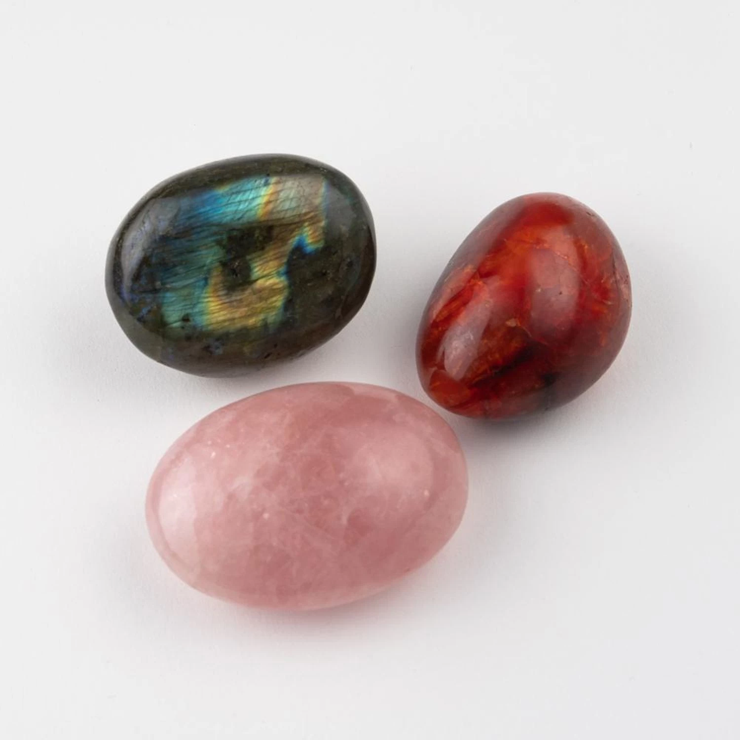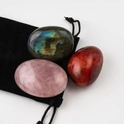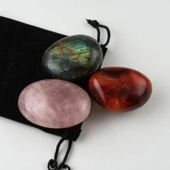 This excellent collection lustrous gemmy Polished palm Crystals are the perfect gift for any occasion. This combination of Rose Quartz, Labradorite and Carnelian Agate can be used together or individually to provide you with the perfect energy mix at any time. Rose Quartz is the stone of unconditional love. One of the most important stones for Heart Chakra work, Rose Quartz opens the heart to all types of love – love of self, love of family, love of friends, romantic love. Carnelian helps to calm the fears about death and rebirth, bringing serenity and acceptance of the great cycle of life. Carnelian is a powerful Sacral Chakra Stone. It increases personal power and physical energy, gives courage, and boosts creativity and compassion. Wearing or carrying Carnelian can enhance vitality and will, providing higher energy needed when approaching new projects and dreams. Highly mystical, Labradorite heightens intuition and enhances psychic abilities, making it great for working with the Third Eye Chakra. Intuition and intellect are balanced by Labradorite, illusions are dispelled and true intentions are seen more easily with its use. Labradorite is also very protective against negative energies, balancing and protecting the aura and sealing the aura from energy leaks. Collection Weight: approx. 194.7 Grams. *Stock photo is shown, similar piece will be sent.