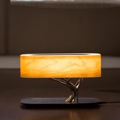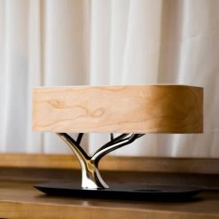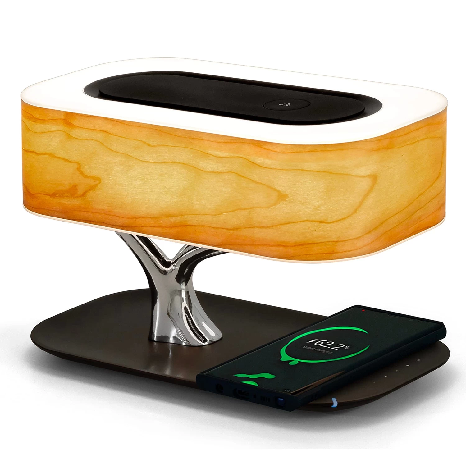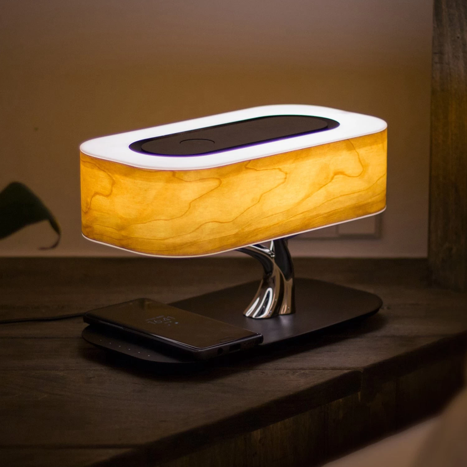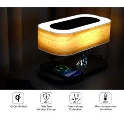 The modern nightstand lamp fits everything you need, from a wireless speaker, Bluetooth speaker, and lighting. No more worry about thinking about what should be placed on the small bedside table. Natural wood lampshade and effortless step-less dimming light are a perfect ideal option for home decor pieces and beautify your home and greatly start your effortless life.