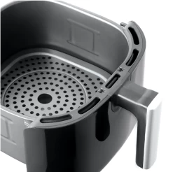 Large easy to use LCD touch screen display with four main control buttons at the top and easy time and temperature adjust. Main controls include on/off, start/stop, cool down mode and pre-set menu Toggle. Pre-set menu includes: fries, shrimp, chicken, chips, fish, steak, bake and defrost options. Cool down function cools down food for 5 minutes after it has been cooked to bring food to an enjoyable eating temperature.