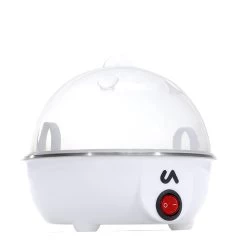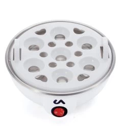 The Uber Appliance Deluxe Rapid Egg Cooker tray can cook up to 7 eggs in one go, simply add water, place the eggs in the tray, cover and flip the switch. Once it is finished cooking the switch auto-shuts off to let you know your eggs are ready! how easy is that!