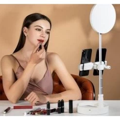 The multifunctional folding table comes with a foldable and lightweight phone holder compatible with most smartphones and dimmable LED Selfie sing. Featuring five levels of brightness adjustment for ultimate natural lighting and protection from eye damage. The ring light can also be rotated up to 360 degrees to shoot perfect videos and selfies from any angle.