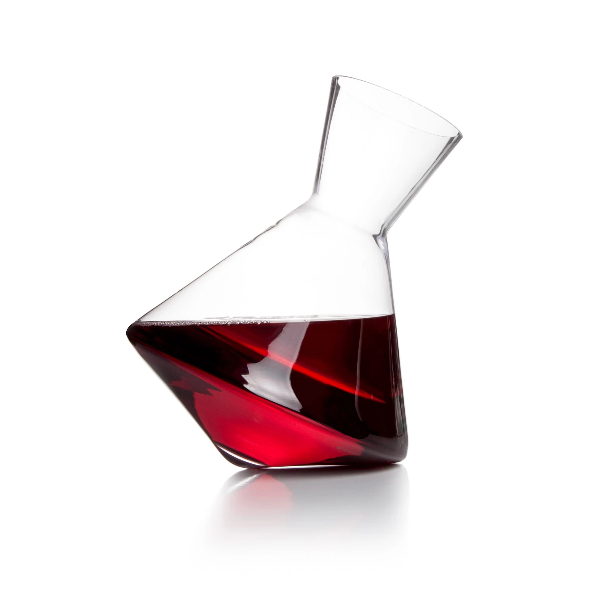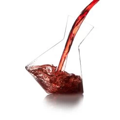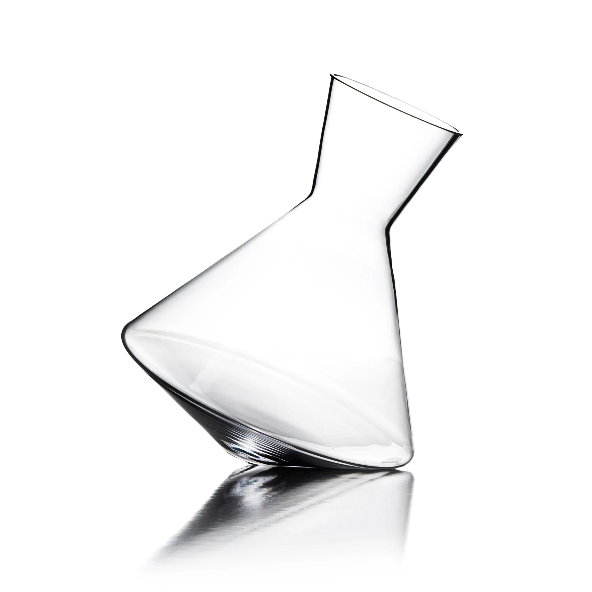 Made from lead-free crystal, the unique conical construction creates a swirling rotation when set down— which assists the oxygenation of the wine.