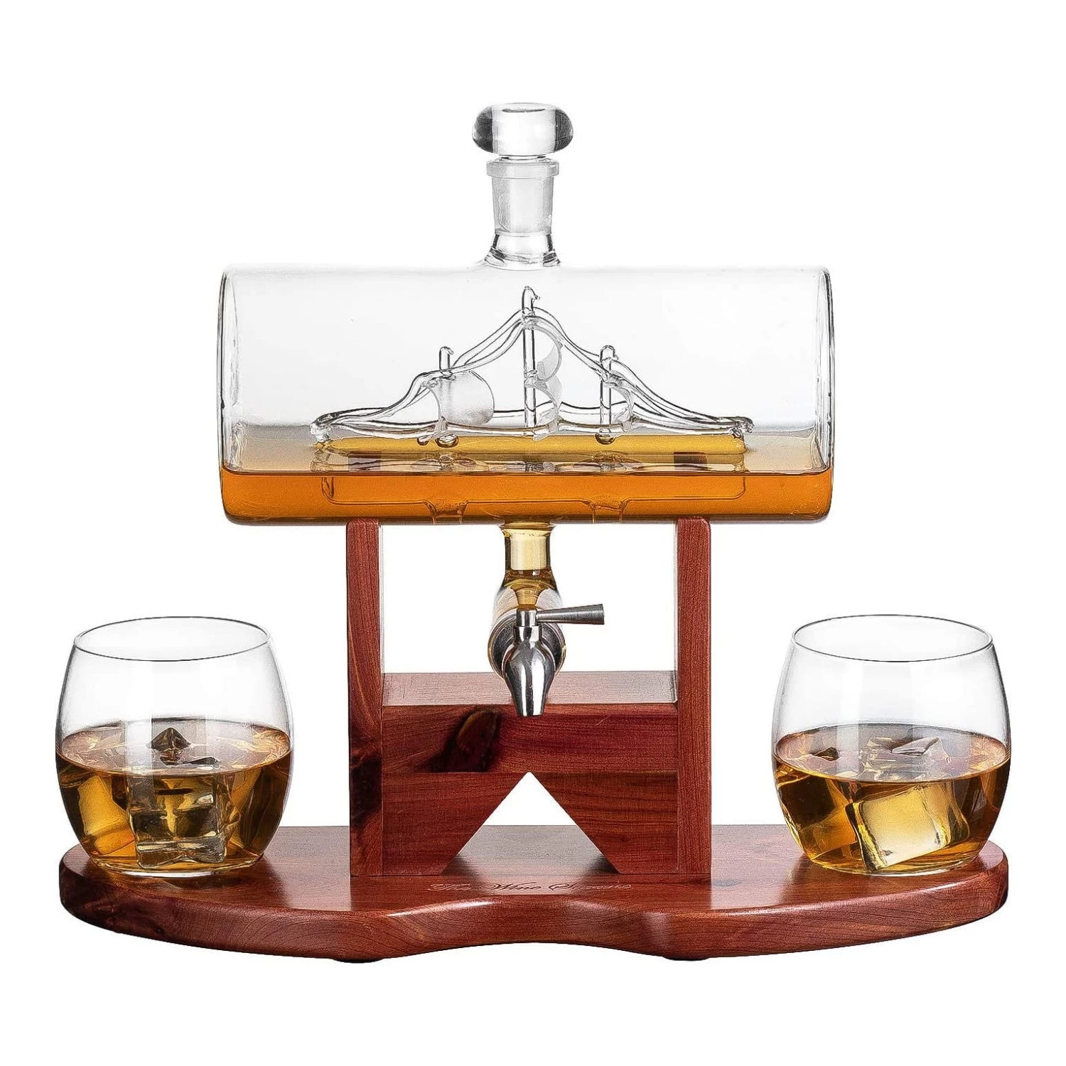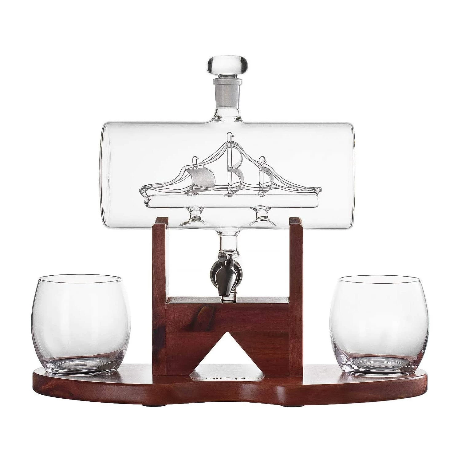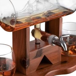 A perfect gift for the Bourbon, Scotch, or Wine connoisseur. Bring this beautiful Ship decanter to any party or as a home welcoming gift. We guarantee that the recipient will enjoy it as much as you will enjoy giving it. Great for Groomsmen gift – Best man gift – Wedding gift for the groom – Graduation gift – Father’s Day gift – Anniversary gift and a- Gift for all whiskey and wine lovers. Made for all occasions This lead free decanter is recommended to be hand washed. Includes glass decanter stopper and Mahogany stained wood display. 900ml Glass Decanter with Stainless Steel Spigot IF THE DECANTER IS LEAKING – The spigot just needs to be tightened by turning the bolt, which in turn tightens the silicone which CAN THEN BE INSERTED TIGHTLY to stops the flow/