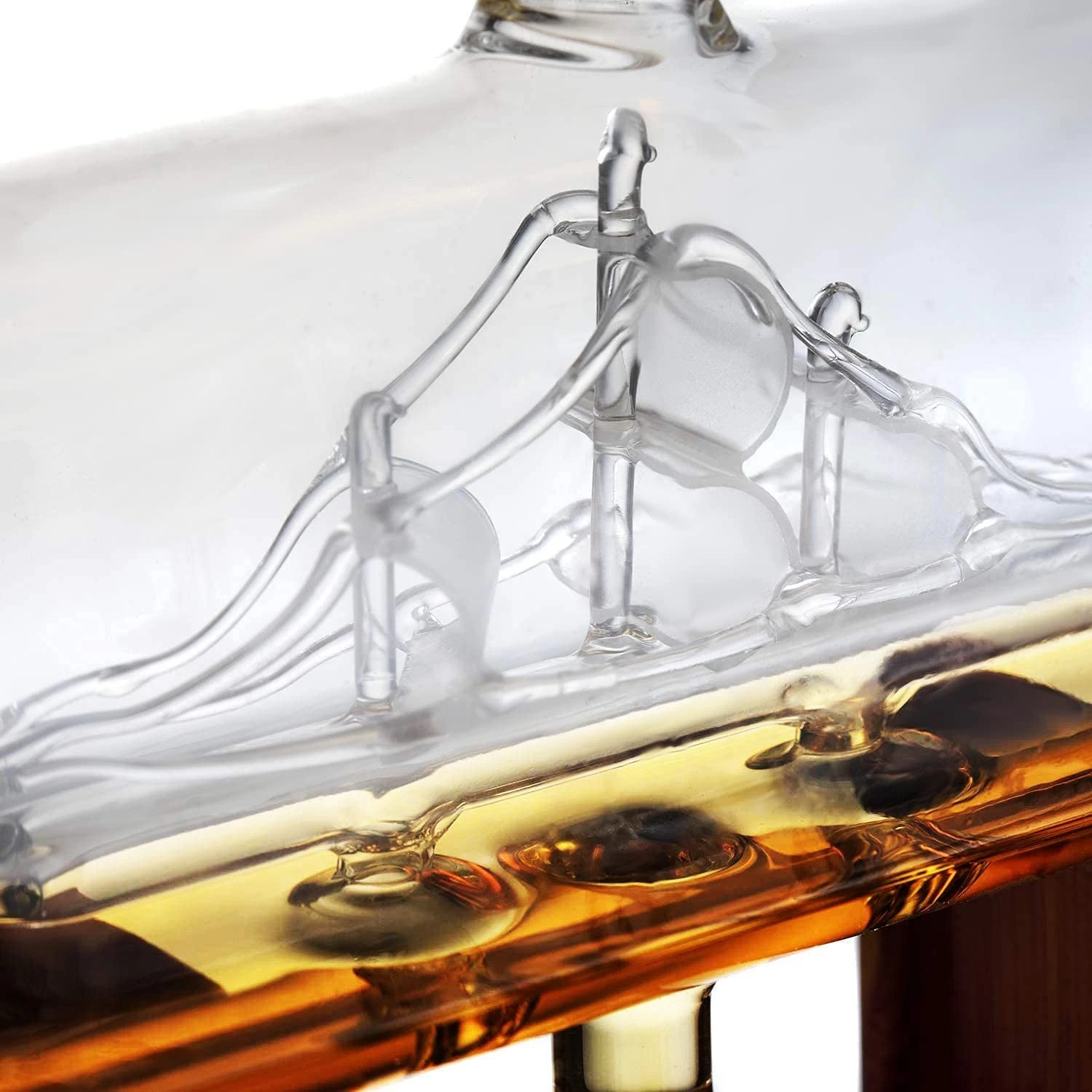 Trust the Brand of quality and luxury The Wine Savant for this beautiful hand-blown 900ml Ship decanter. It will marvel shine and impress even the most discerning connoisseur Sail the seas and drink your spirits, this Beautiful Ship Decanter is a novelty for any table or bar! Perfect for you table, bar or any place of display, you’ll be delighted and delight your guest with this truly unique Ship decanter Embrace your love of both travel adventure and a good whiskey/scotch. This beautiful mouth blown Ship decanter is a must have. The sails and ship have a amber hue which makes this a beautiful home piece. This decanter will aerate your wine or any beverage as well.