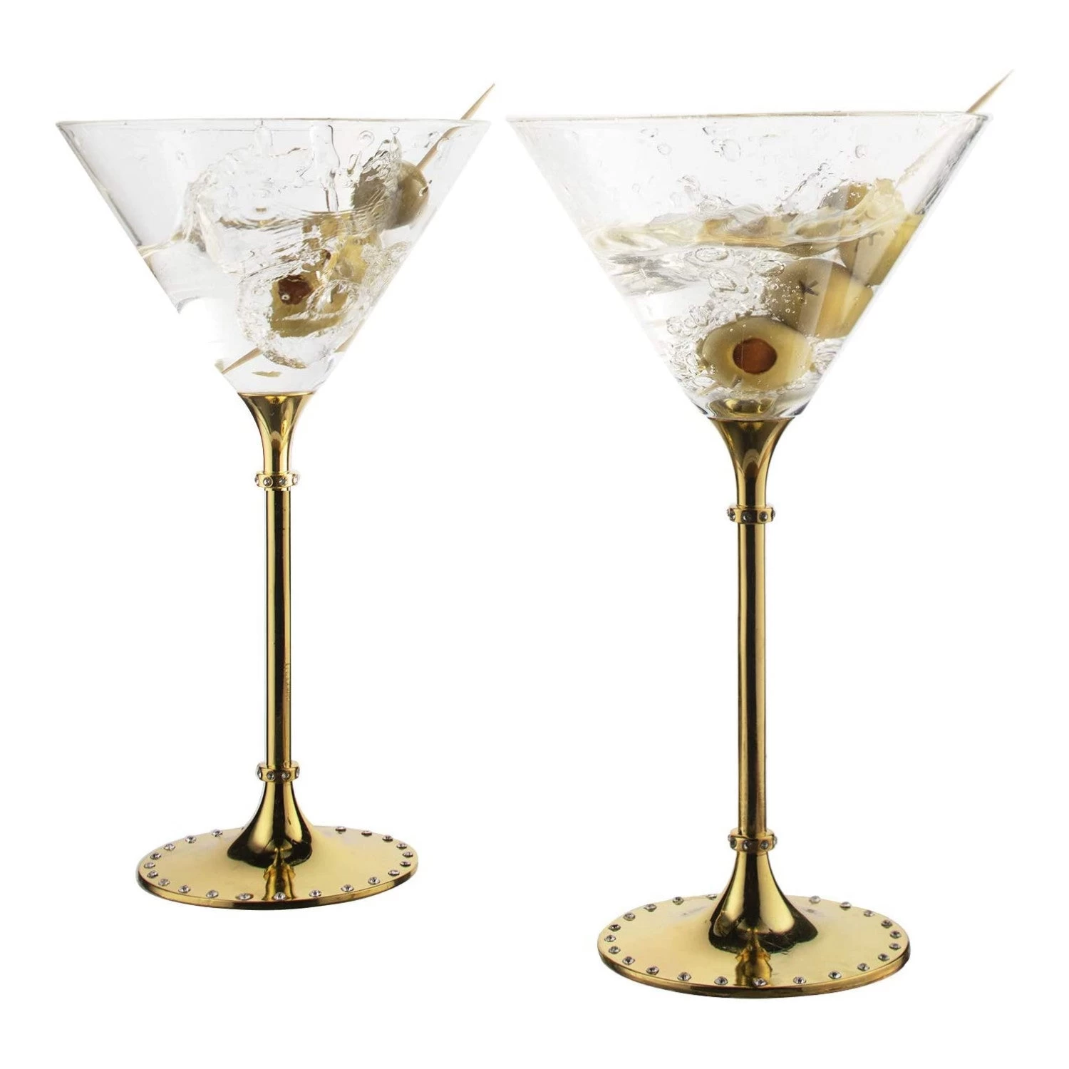 These Yellow Gold Diamond Studded Martini Glasses from Wine Savant would be the perfect addition to any household, bar or restaurant.The long stem gives class while the yellow gold gives a feeling of class and luxury. Perfect for dinner parties or just for a glass of wine to unwind. The enchanting wine glasses are great for any occasion; they add a complimenting shine to any beverage that has the pleasure of making its way into the glass.